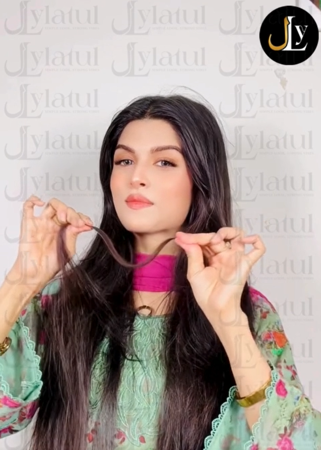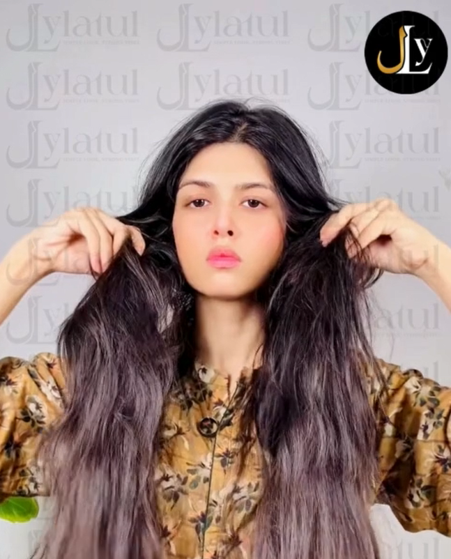 1. Take a small amount of Lylatul Aloe Vera Hair Oil in your palm.