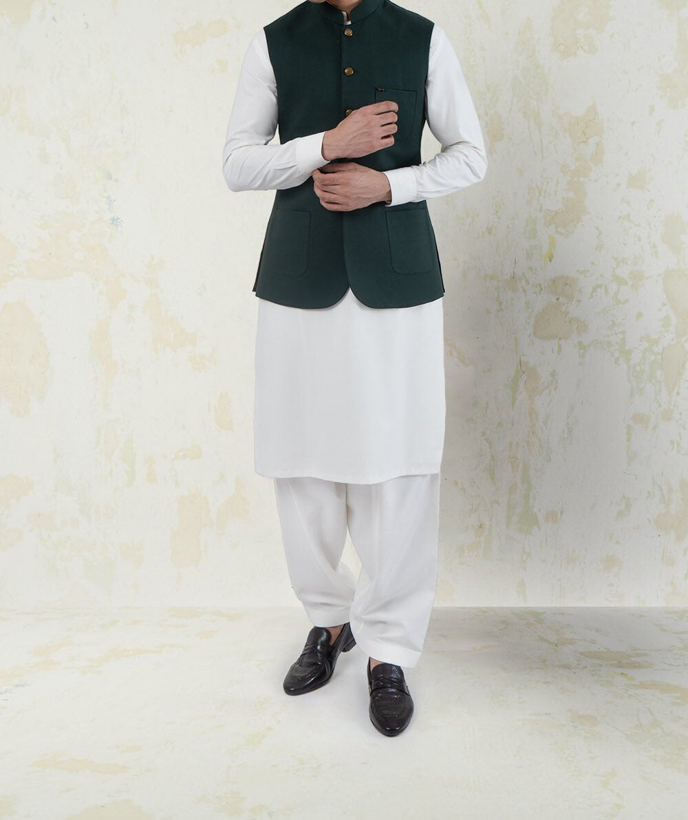 Designed with a round hem for a perfect fit, this waistcoat pairs effortlessly with shalwar kameez, kurta, or formal trousers, making it a versatile staple in men’s fashion.