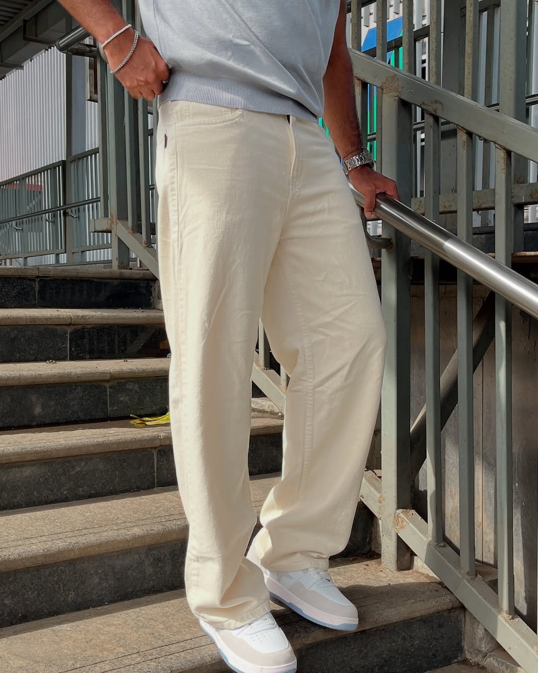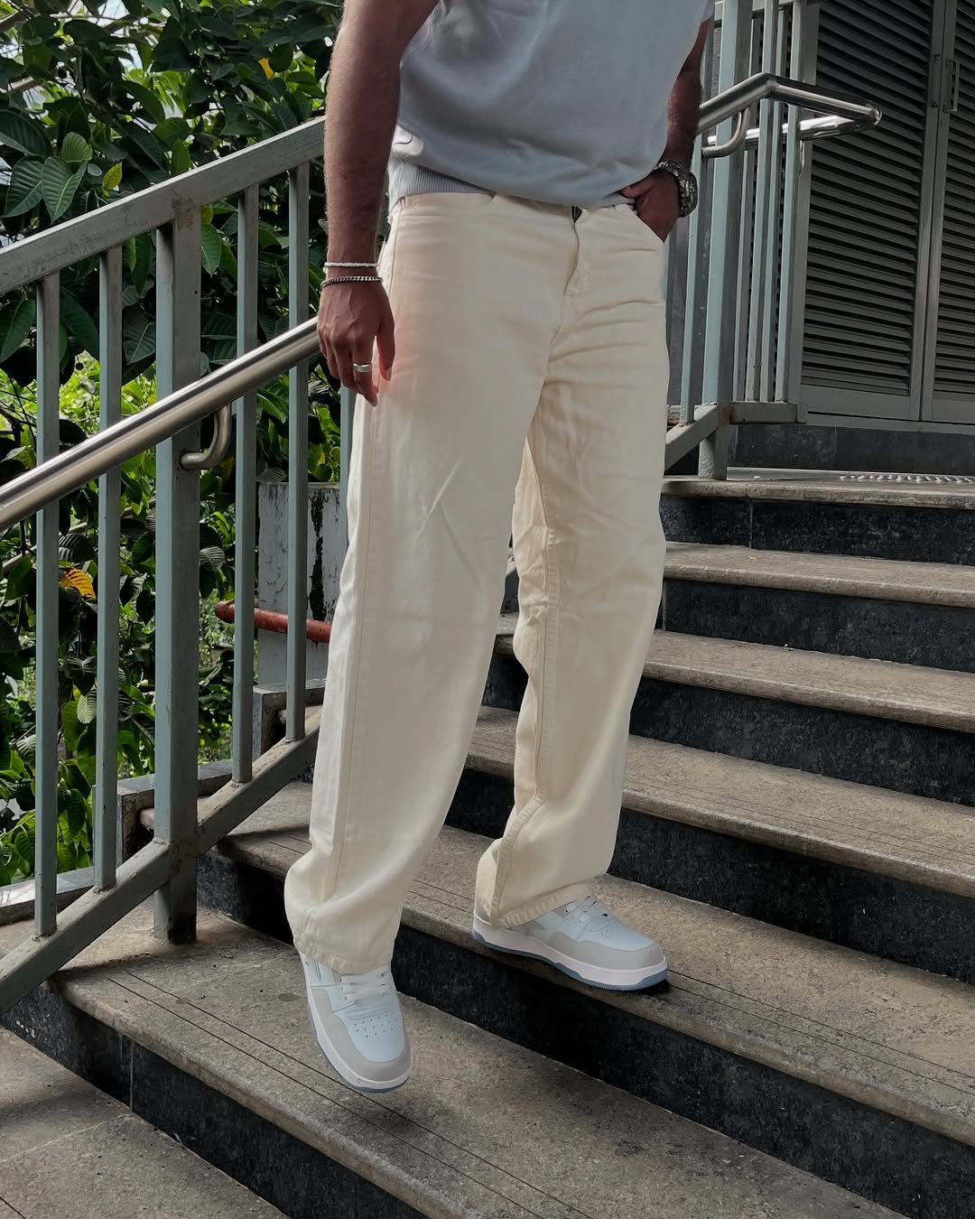 Lylatul Unisex Relaxed Fit Jeans Soft Beige Everyday Denim