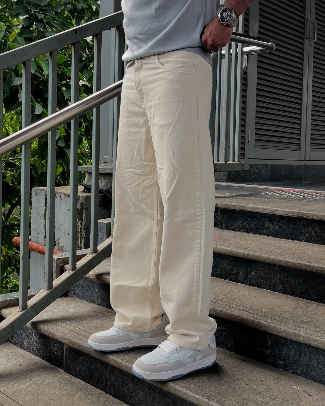 The Lylatul Unisex Relaxed Fit Jeans feature a soft beige wash and relaxed fit for breathable comfort and easy styling — perfect for casual, everyday outfits.